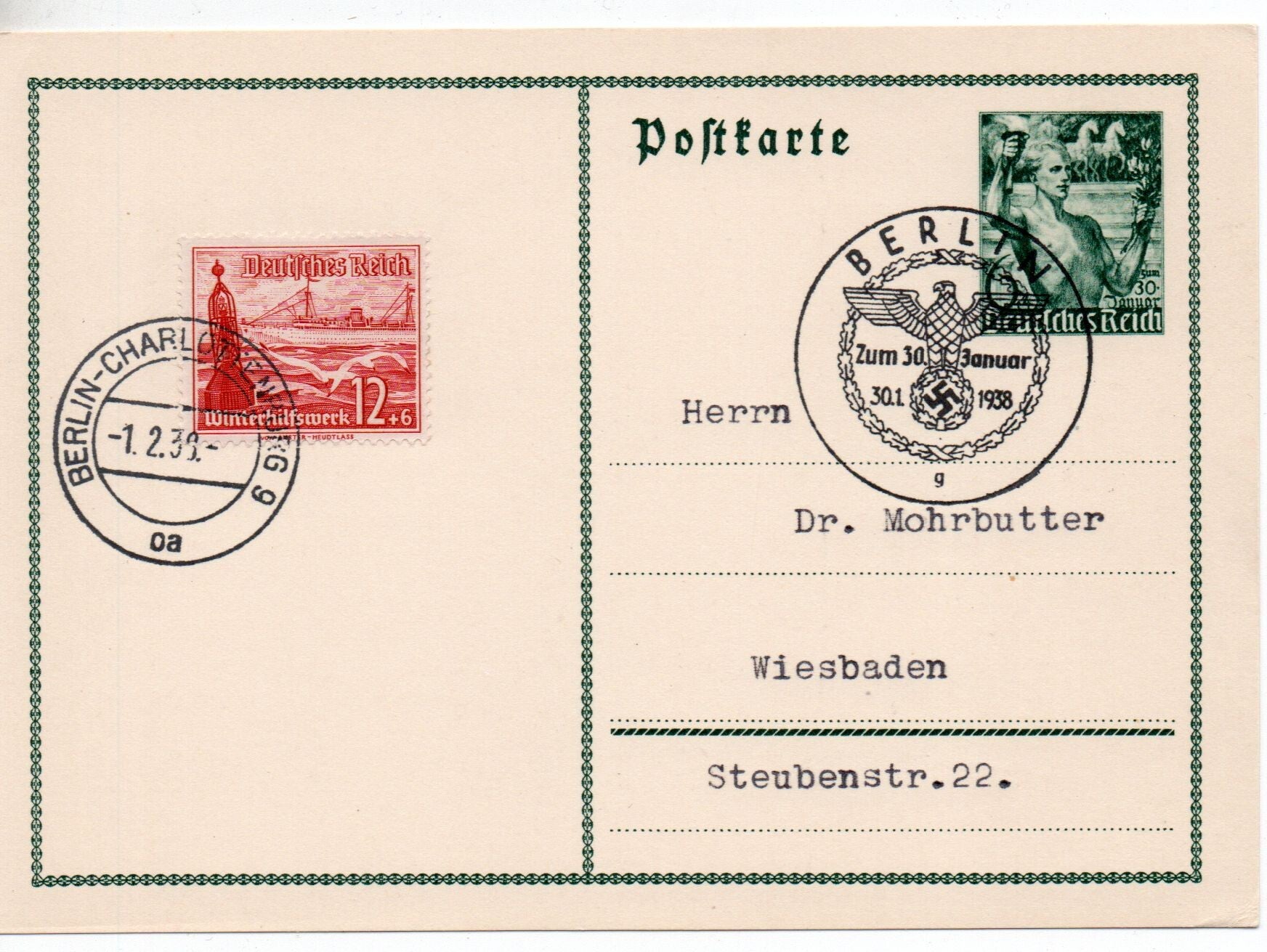 P267 + ZuF. 656 Berlin SST 30.1.38 und Stempel 1.2.38