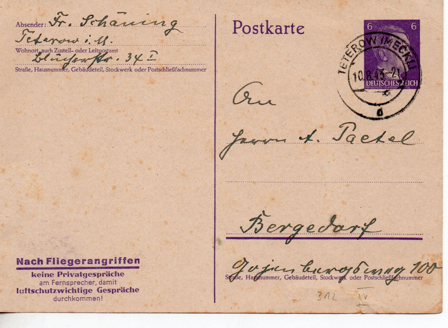 Deutsches Reich Ganzsache P312a/04 gelaufen/ o