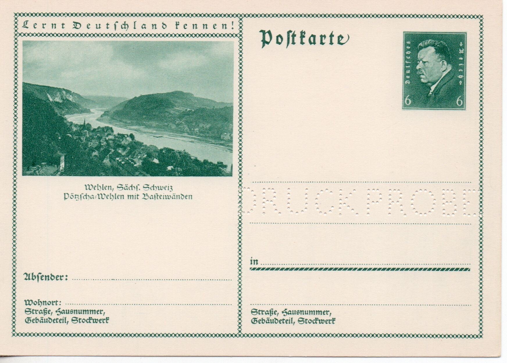 Deutsches Reich Bildpostkarte P202/ 055 Druckprobe ungebraucht/ *