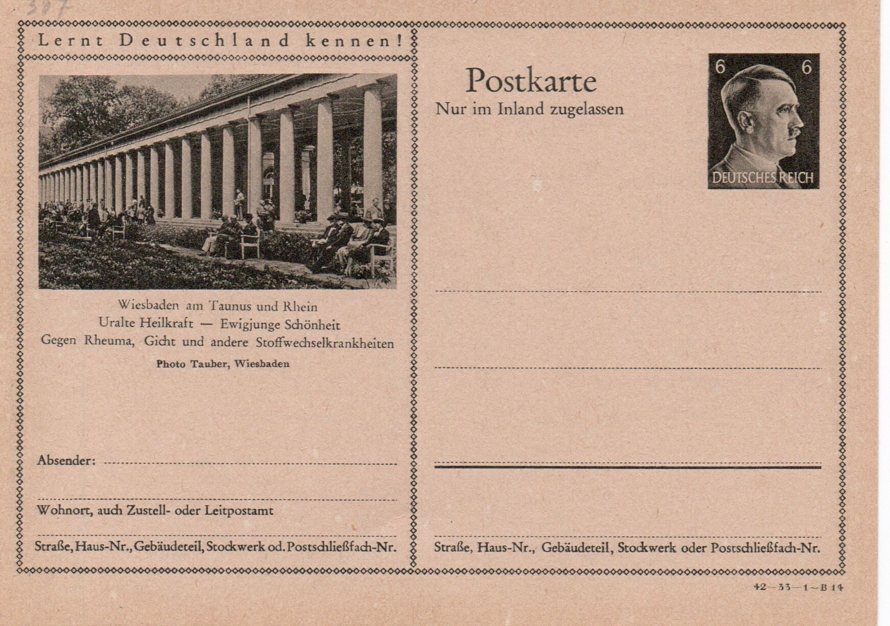 Deutsches Reich Bildpostkarte P307/ 42-33-1-B14 ungebraucht/ *