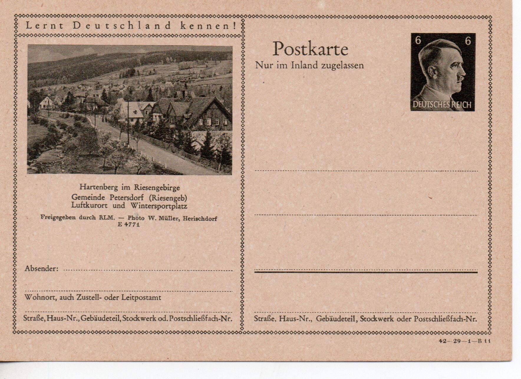 Deutsches Reich Bildpostkarte P307/ 42-29-1-B11 ungebraucht/ *