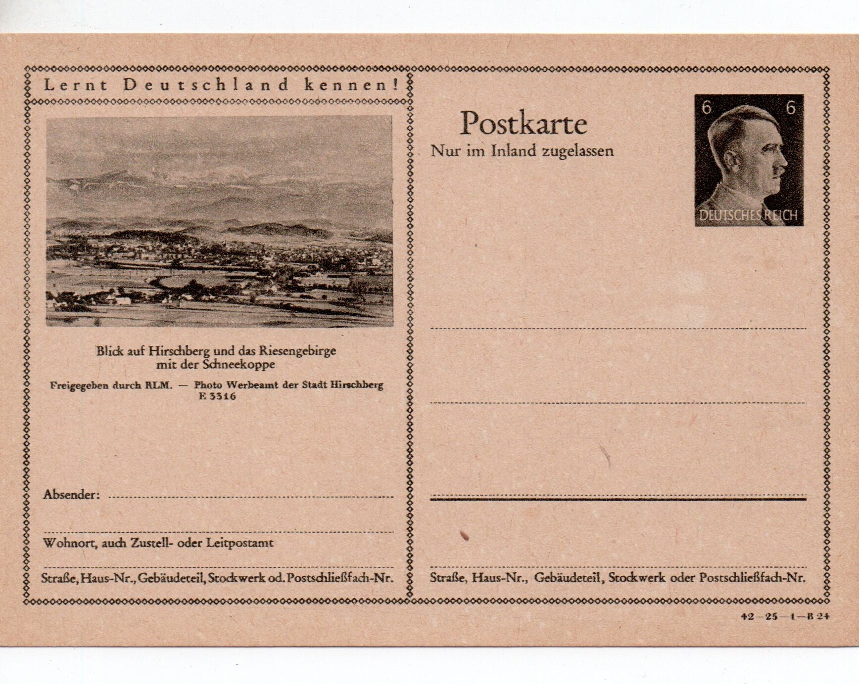 Deutsches Reich Bildpostkarte P307/ 42-25-1-B24 ungebraucht/ *