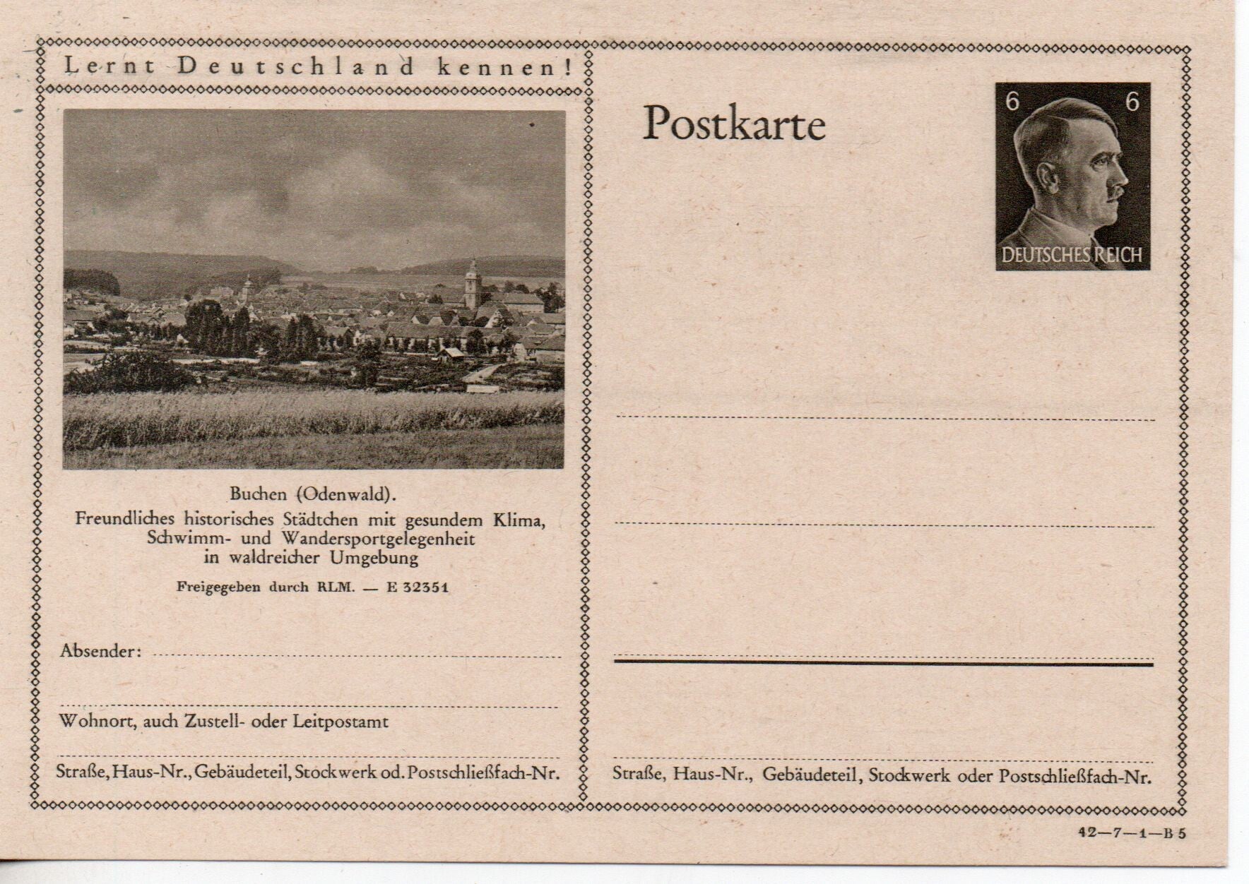 Deutsches Reich Bildpostkarte P305/ 42-7-1-B5 ungebraucht/ *